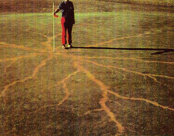 落雷通常是指向凸起的物體,特別是有針尖形狀的,例如高爾夫球場的球桿 就是。在這張照片裡大家可以清楚看到電流流過的痕跡。