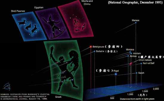 獵 戶 座 在 不 同 的 文 化 , 有 不 同 的 名 稱 。 由 地 面 看 來 星 座 中 的 天 體 全 在 同 一 面 上 , 但 實 際 上 , 他 們 可 能 相 去 甚 遠 。 另 在 某 一 星 座 方 向 的 星 雲 或 銀 河 系 , 則 以 該 星 座 來 命 名 , 例 如 : 獵 戶 座 大 星 雲 , 仙 女 座 大 銀 河 。
